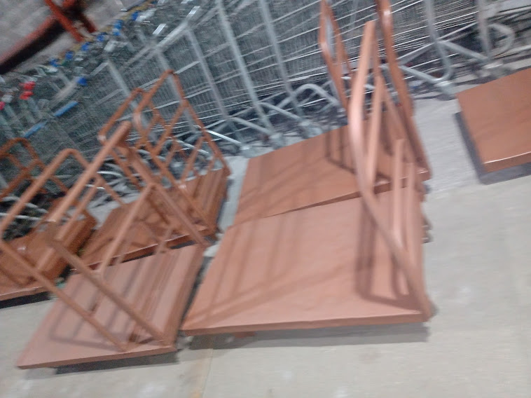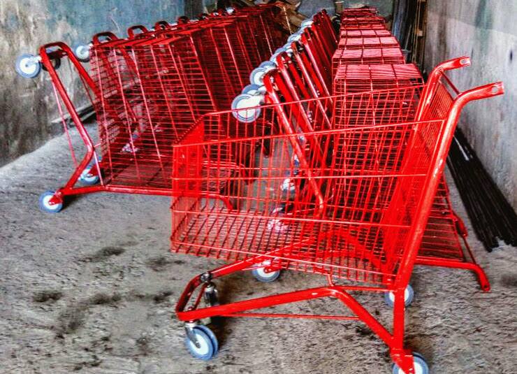 Reforma completa de carrinhos de supermercado com estrutura reforçada e acabamento premium.